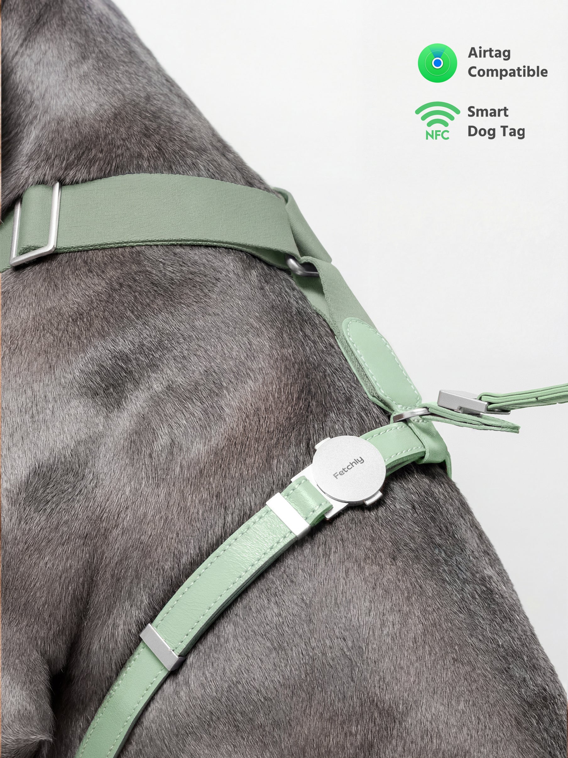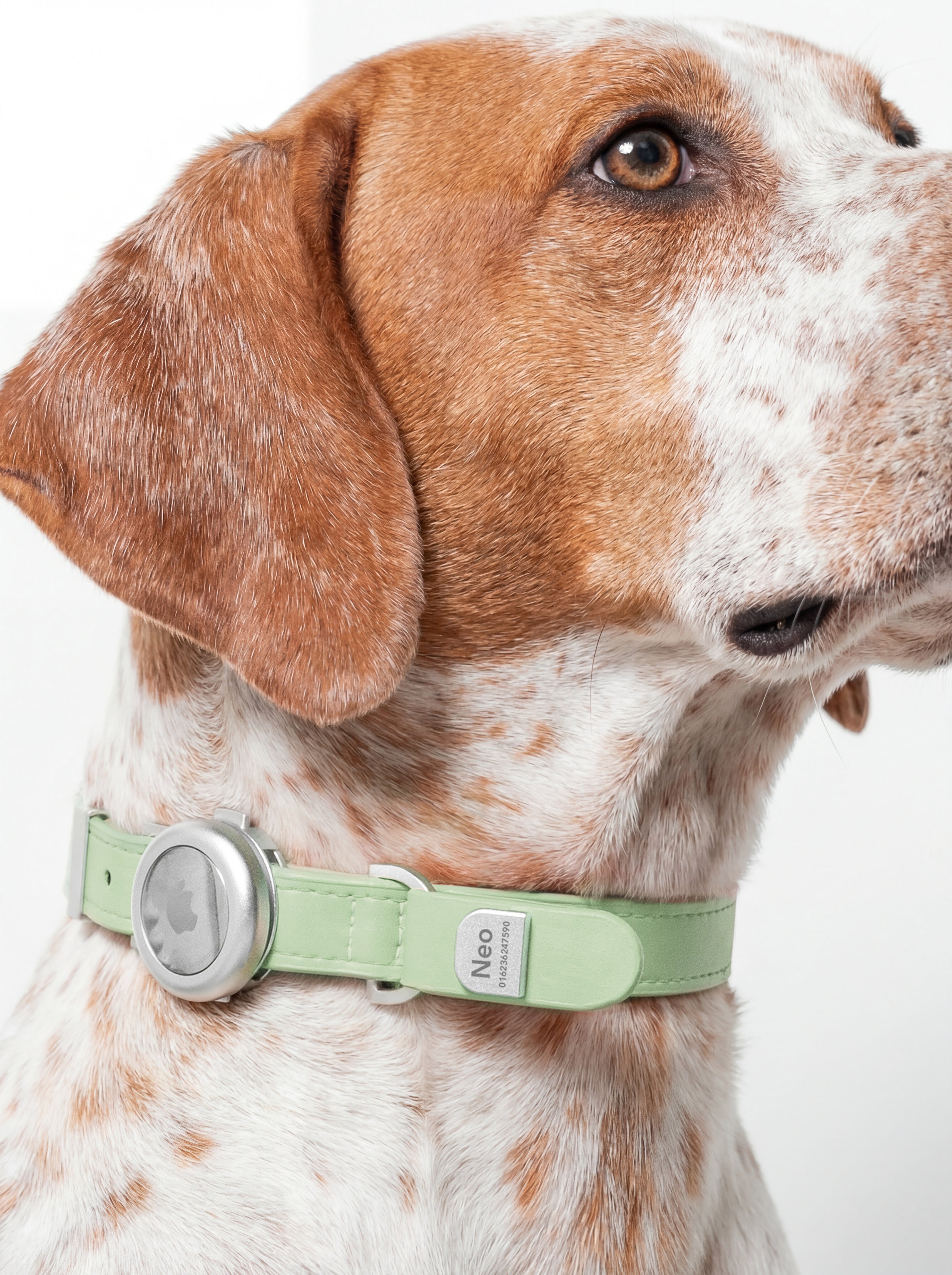 Built-in NFC chip stores vet info, emergency contacts, and your dog's footprint map.